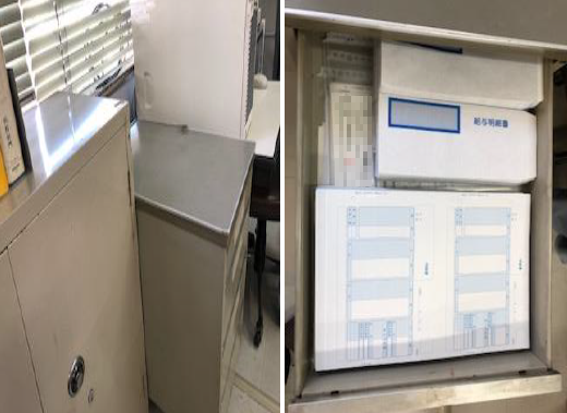 事務所の袖机上に積み上げられていた書類を整理した改善事例ですね。