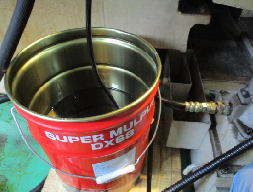 NCマシンの廃油を一旦廃油受けに溜めた後に