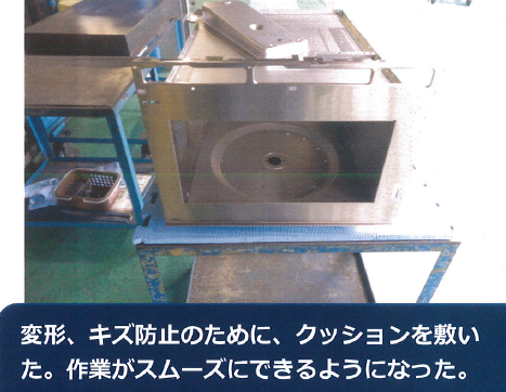 製品の変形やキズを防止し作業がスムーズにできるようにした改善ですね。