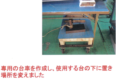 改善前は重い治具を手で運んでいたので持ち運びに時間がかかる状態でした。