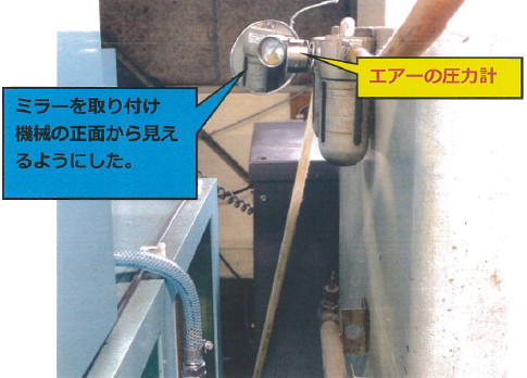 5S改善事例:加圧計の確認が出来るようにミラーを取り付け