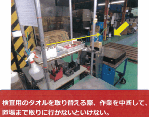 ただ、置き場所が決まっていないため、プレス油を探すなどのムダがあったと推察します。