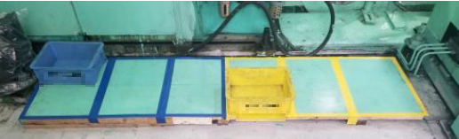 そこで製品の識別を容易にするために、床に青色と黄色の