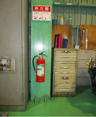 5S改善事例:消火器の置き方変更