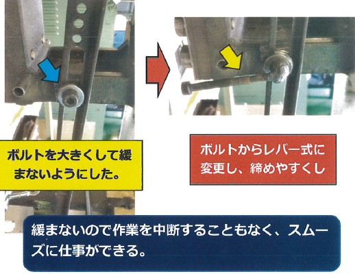 今回の改善により、緩みが生じた際には作業者自身が即座にレバーで締め付けを行うことができ、