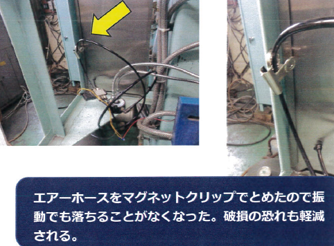設備の振動によるエアホース落下という「当たり前の困りごと」に着目し、